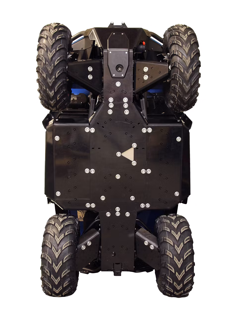 Skydda underredet på din ATV med en heltäckande hasplåt i plast. Här får du en stark och tålig hasplåt som skyddar både underrede, a-armar och fotbaljor mot slag och skador. Hasplåten är tillverkad i 10 mm HDPE plast som enkelt glider över stockar och stenar i ojämn terräng. Plasten gör att du slipper en hasplåt som böjer sig, rostar eller ärgar. Enkel att montera med skräddarsydd passform till din ATV. Hasplåten är förberedd för plogfäste och har servicehål för enkel åtkomst till oljepluggar. Dräneringshål gör att vatten och lera enkelt förs bort under hasplåten.