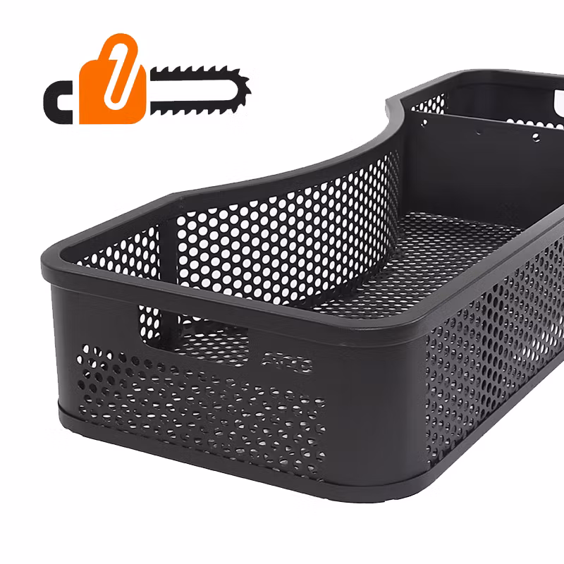 Den kraftiga korgen i stålplåt är den ultimata lösningen för dig som behöver en hållbar och praktisk transportlösning för motorsåg, bensindunk och andra redskap. Tillverkad i pulverlackerad stålplåt med runda hål, kombinerar den styrka med en snygg och genomtänkt design. Passar alla fyrhjulingar. Levereras med U-bult för montering på stålrack. Snabbfärste till nyare modeller med kompositrack finns som tillval.