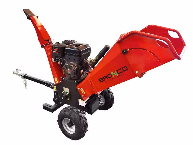 En kraftfull flishugg från Bronco som med sin B&S motor på 13.5hk och två roterande knivar