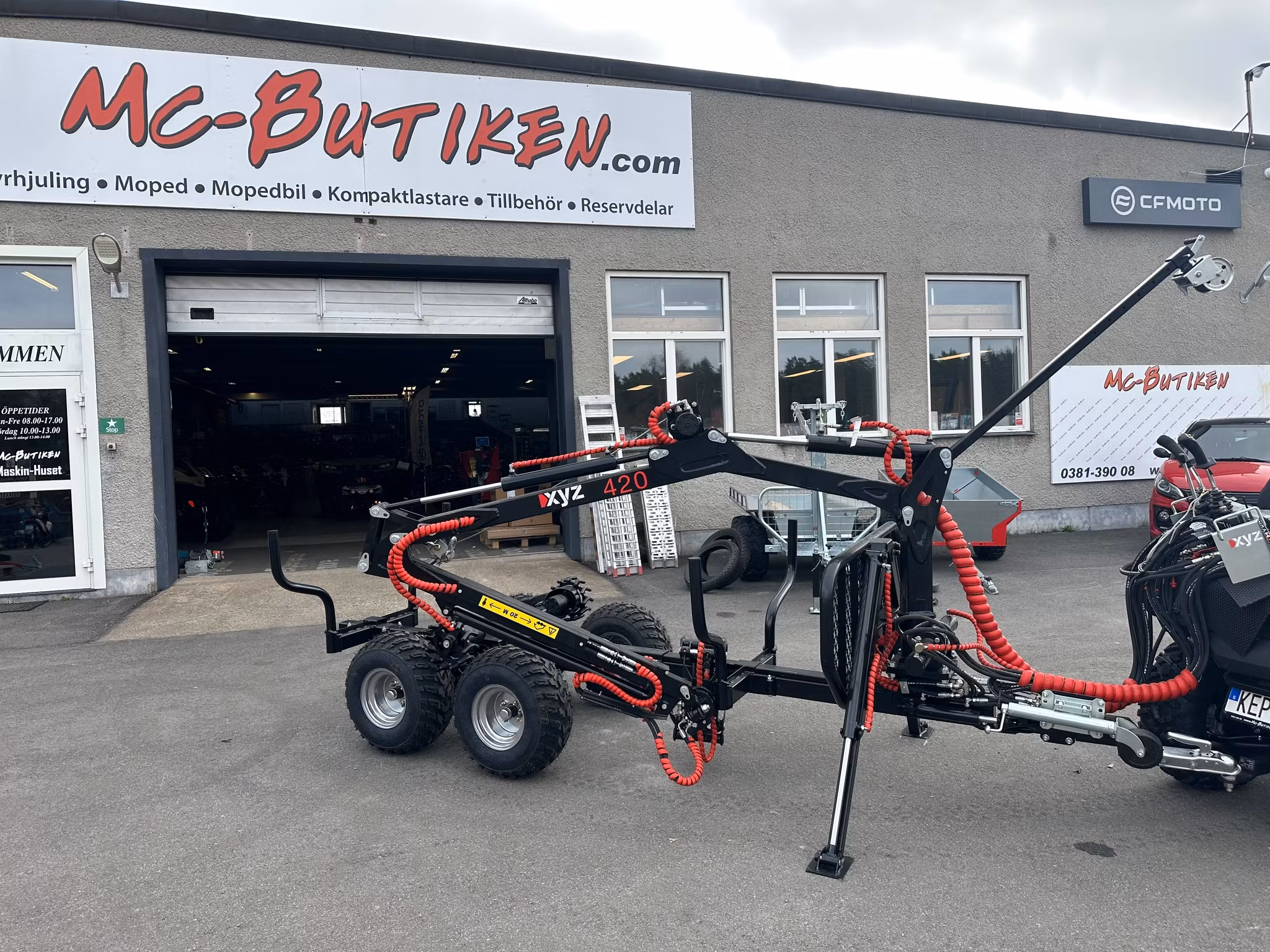 XYZ Kranvagn 420 är framtagen för att tillgodose konsumenternas höga krav på funktion, prestanda och design. Den har en mycket kraftig konstruktion och många funktioner. Kranvagnen har en kran med ett väl utvecklat rörelseschema. Hjälpdriften och ramstyrningen manövreras enkelt via strömbrytare på styret.