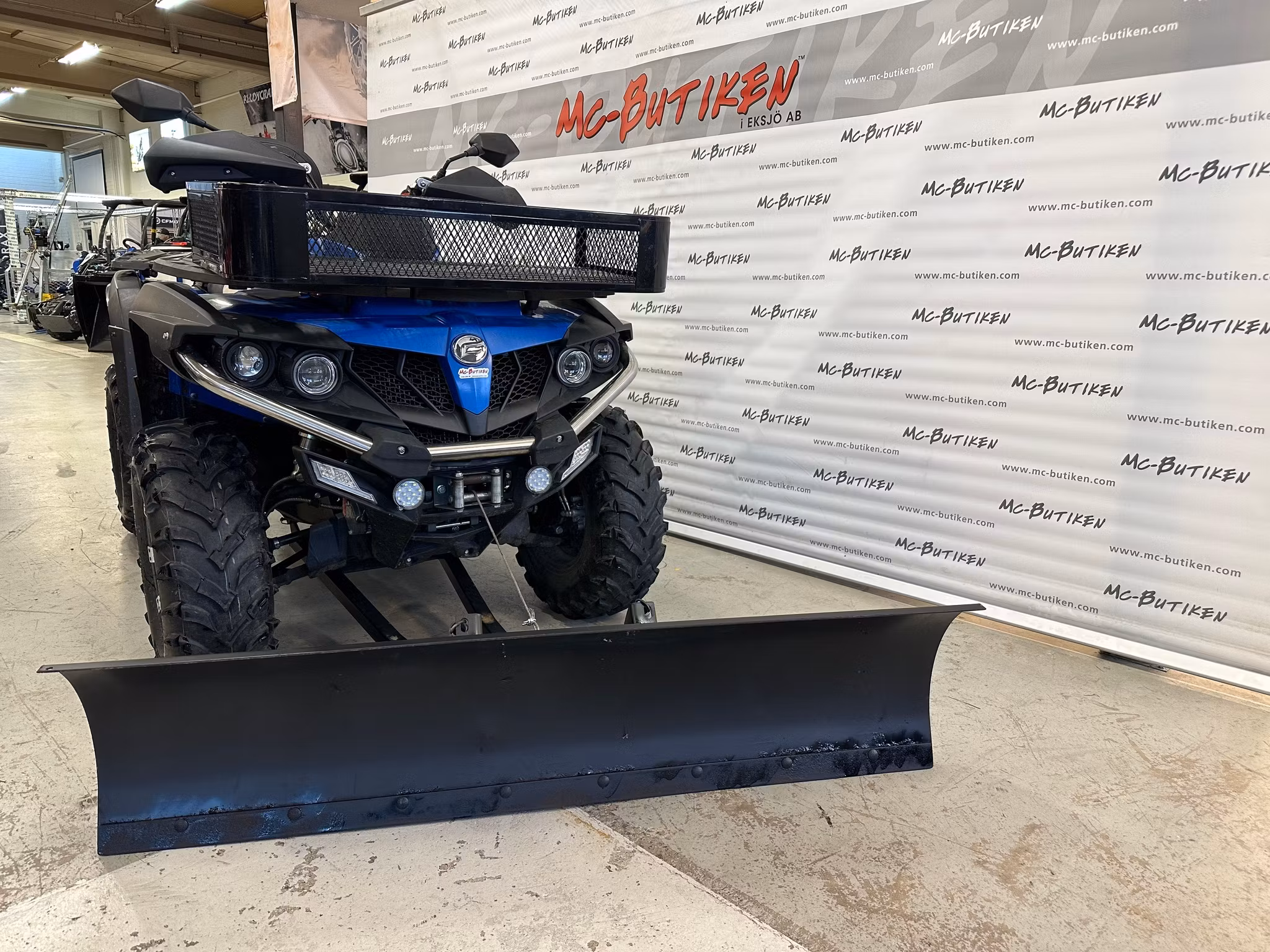 Fyrhjuling CF Moto C-Force 550 som går bra och är extrautrustad med snöplog 150cm, nätkorg fram.