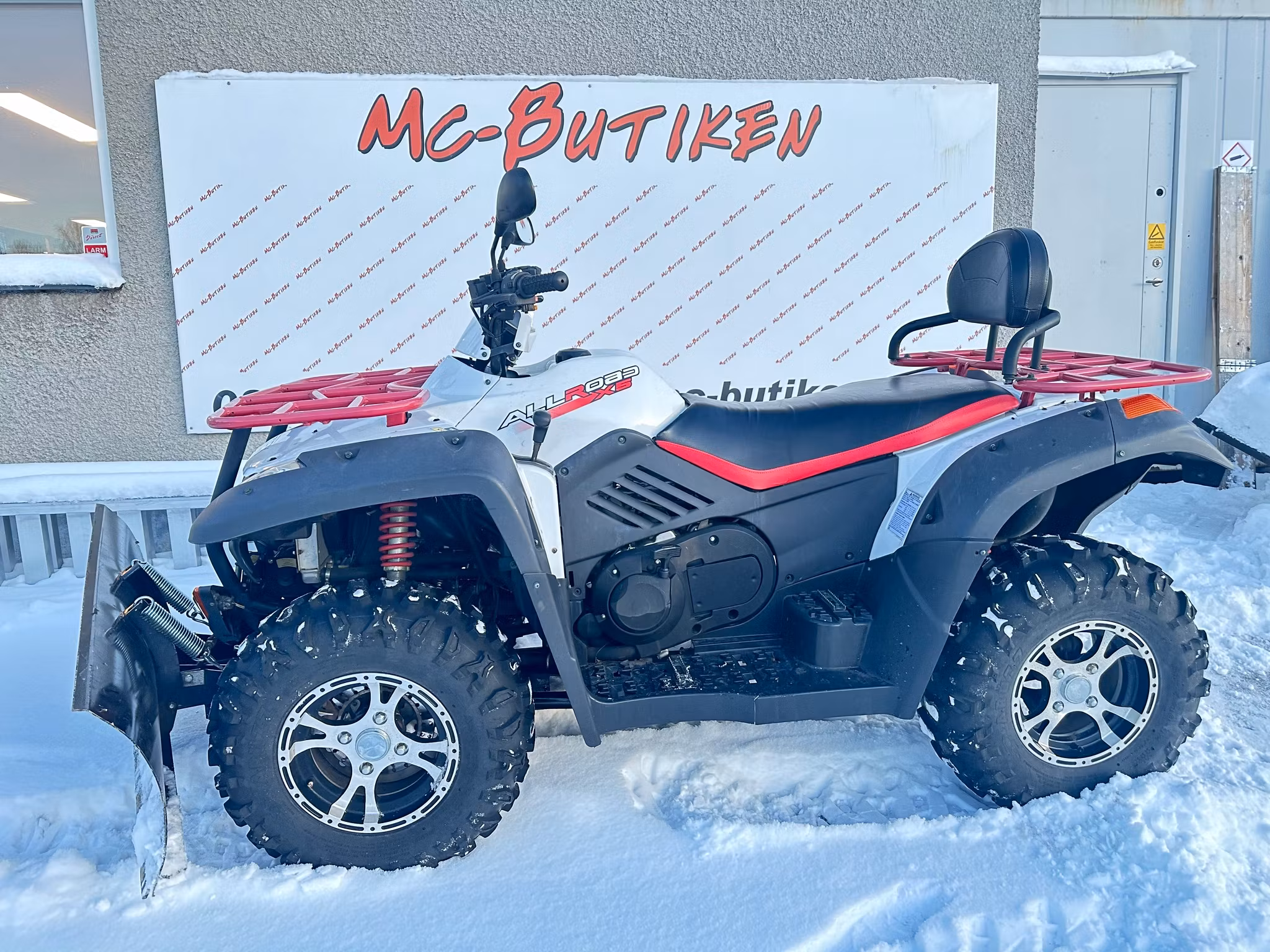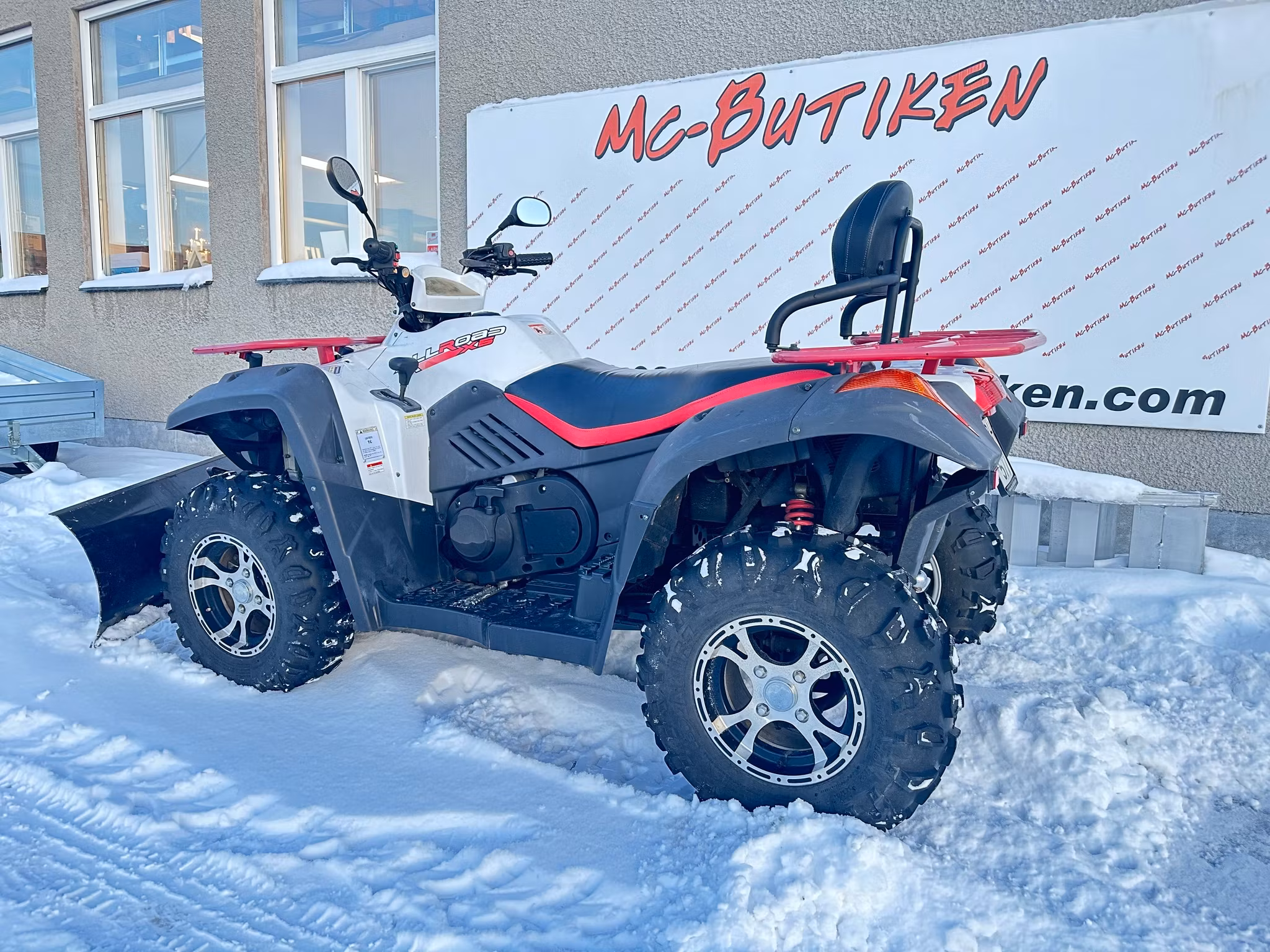 CF Moto 500cc fyrhjuling med plog 150cm, nyservad och nybes ua 16/1 -24.